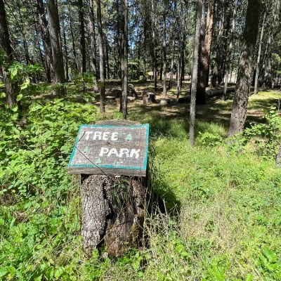 The Tree Park is a 4-acre, natural element play park nestled under a continuous conifer canopy, opening to sky and hillside views at the north end. Current and future play elements are made using salvaged logs and boulders, connected by the Log Highway. This unique feature allows you to traverse the park and move between play elements without ever touching the forest floor, providing an exhilarating experience of moving from tree to tree throughout the forest.